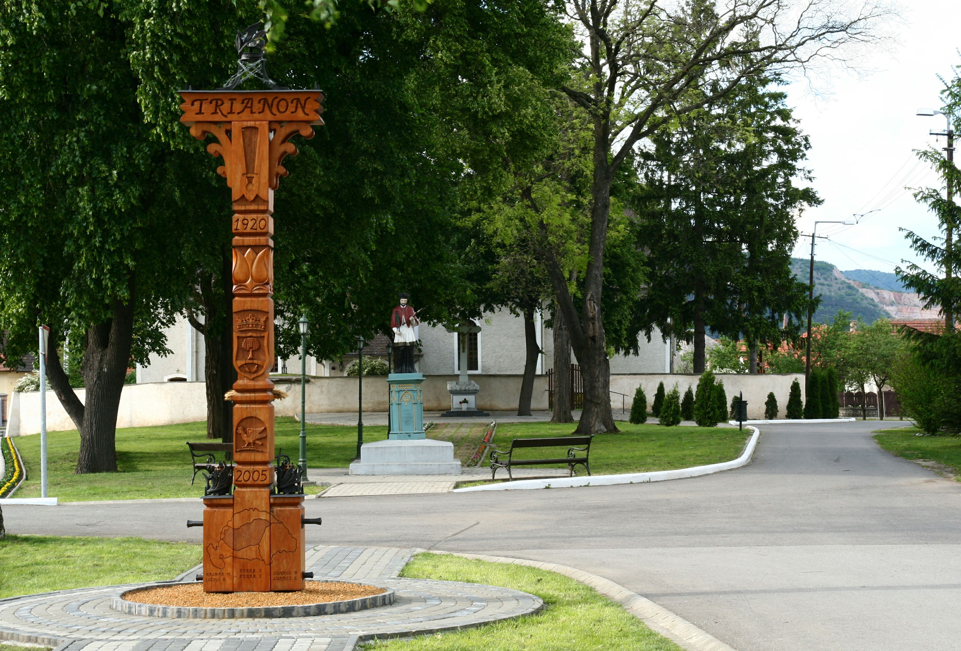 A templomtól délre található a Szent Imre tér. Ezen a téren egy kőből faragott kereszt, valamint Nepumuki Szent János öntöttvas szobra áll a burkolt sétány két végén. E teret 2002-ben újították fel, és a parkban a fák alatt fapadokat állítottak a régmúlt emlékei szerint, így az arra járók meg tudnak ismét pihenni, elbeszélgetni. 2005-ben készült el a Trianoni emlékmű.